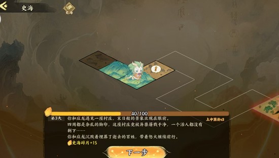 华夏绘世录第二章的开启条件为完成识海第一章并推进主线至逐鹿之战后。解锁后可在识海界面进入该章节,每次进入需消耗50点体力。本章节为线性关卡,无分支路径,玩家在移动时只能朝单一方向前进,每点击一次“下一步”即可进入下一个事件格。由于不存在多路线选择,整个过程无需担心走错或遗漏内容,只需按提示逐步推进即可完成全部流程。