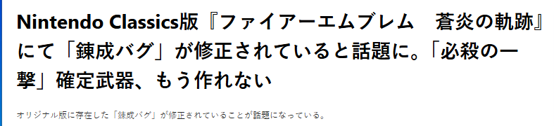 昨天任天堂为旗下Switch Online会员服务的Classics分享服务追加新游戏,20年经典名作《火焰纹章:苍炎之轨迹》入库,官方声称做了不少调整,很快哟玩家玩过惊喜发现老BUG修复点赞。