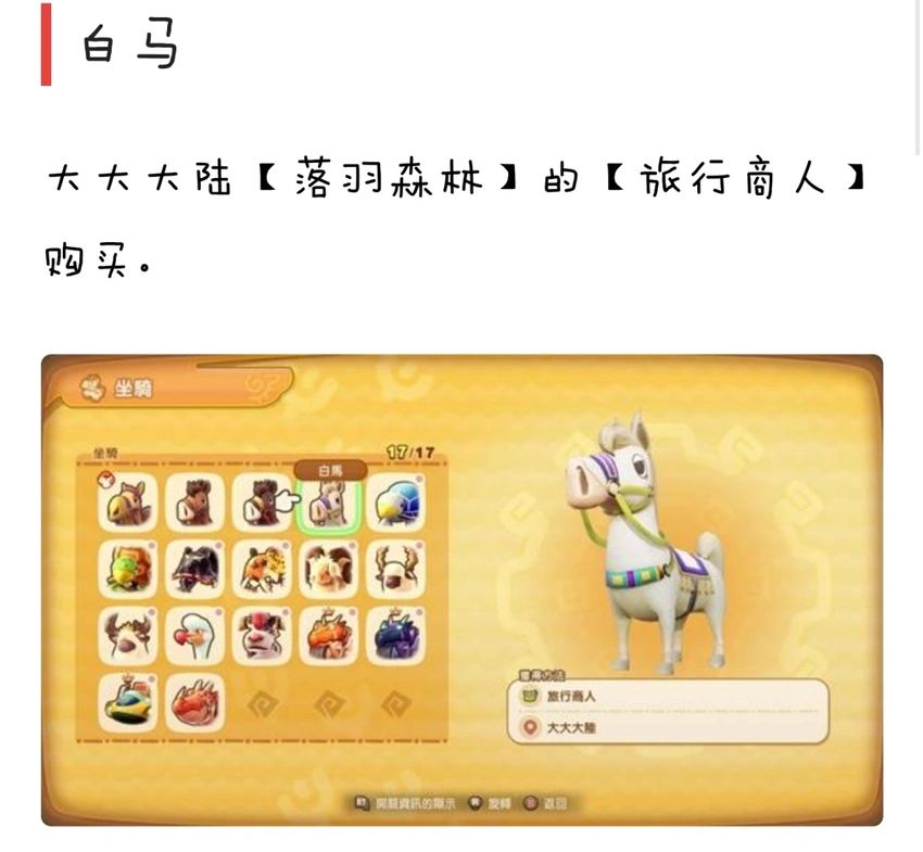 4、白马:大大大陆-落羽森林的旅行商人购买