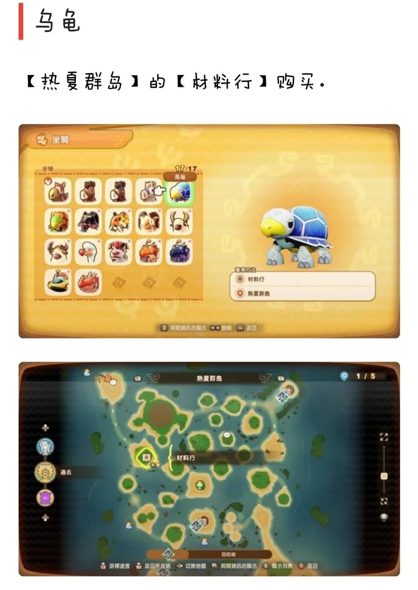幻想生活i也就是幻想生活i转圈圈的龙和偷取时间的少女,游戏中目前坐骑有骆驼、棕色马、黑马、白马、乌龟、陆龟、黑豹、森林豹、山羊咩、巴哈·哈、巴哈·哈之王、洁白赛鸟、陶洛斯、沉睡巨龙机车、暗黑沉睡巨龙重机、飞机艇、沉睡迷你龙。下面为大家收集整理了具体的各个坐骑的获取方法图鉴内容!