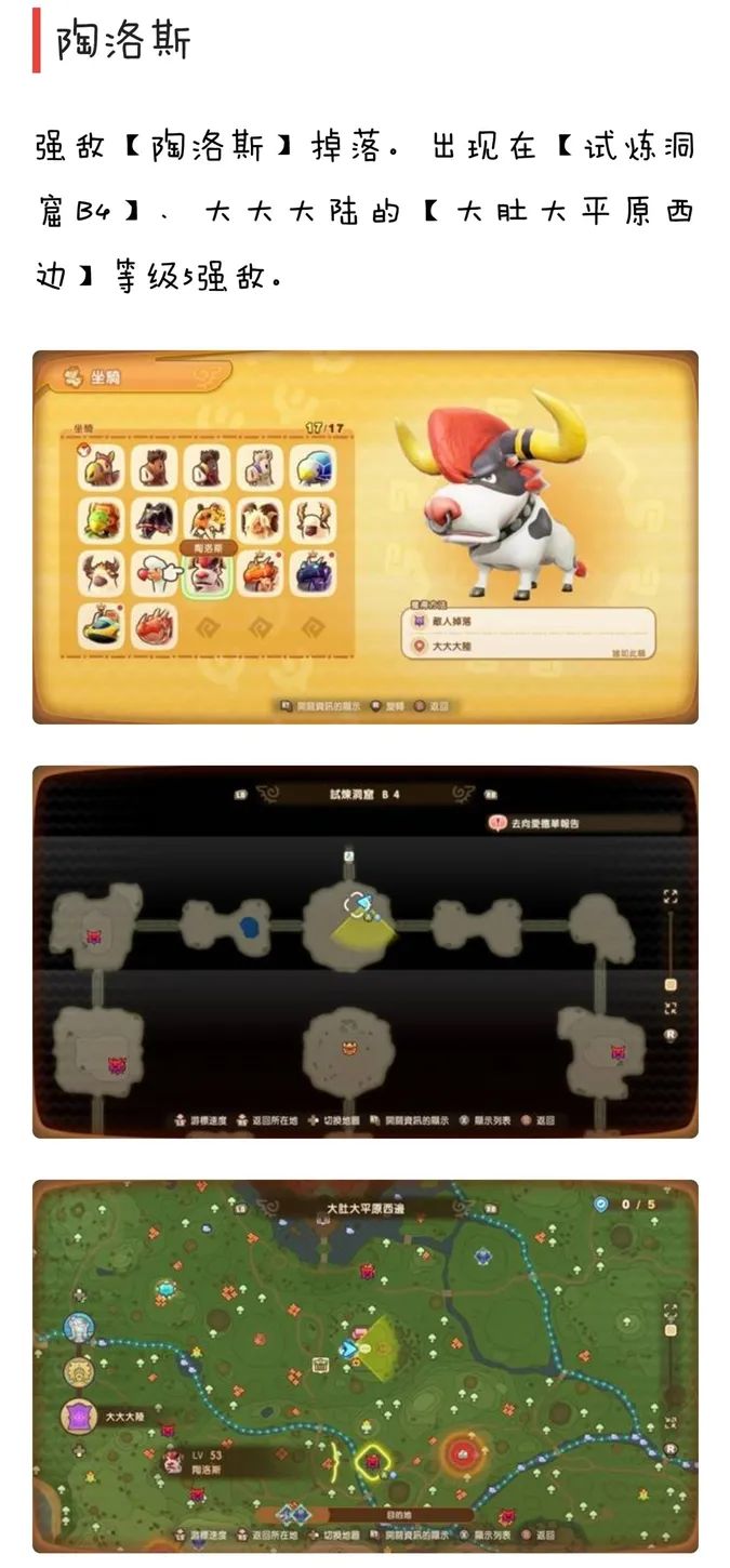 13、陶洛斯:强敌陶洛斯掉落,出现在试炼洞窟B4,大大大陆-大肚大平原西边等级5强敌