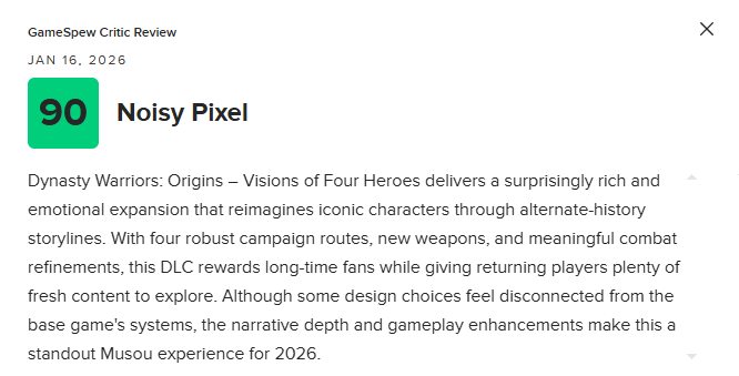 尽管部分设计选择与本体的系统衔接感略显割裂,但出色的叙事深度和玩法层面的提升,仍然让这部DLC成为2026年最亮眼的无双类体验之一。
