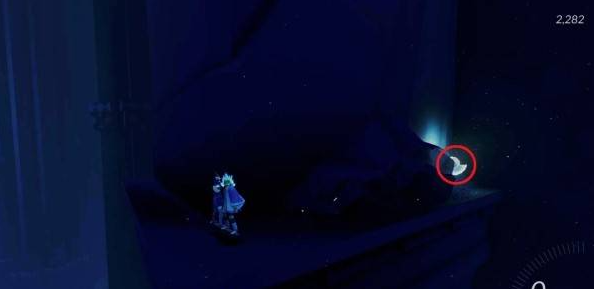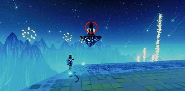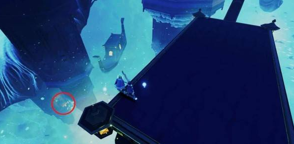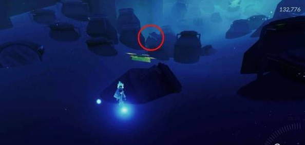 在巨型浮岛下方,往左下方看可以看到洞口的灯笼堆,利用低处的船跳到洞口即可看到贝壳。
