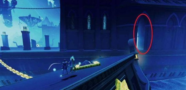 在巨大船只出水的区域,靠近岩壁后方可以看到带有轨道提示的一艘船,从船上加速起跳,沿着轨道往高塔方向走,来到墙体末段,再次加速起跳并滑到上方区域即可看到贝壳。
