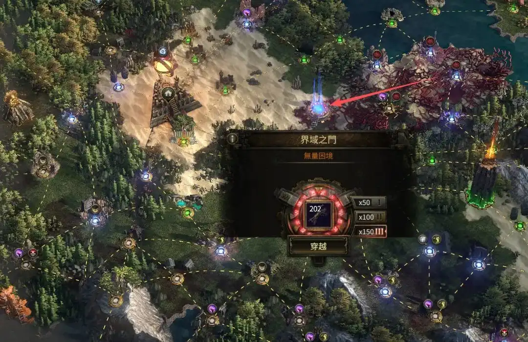 然后来到异界出发地右边的界域之门,将刚买的材料放进去。需要打3次,50次的可以自己尝试打一下,打不过世界频道摇人,找人帮忙打,把掉落物品都给别人,有人会帮忙的。