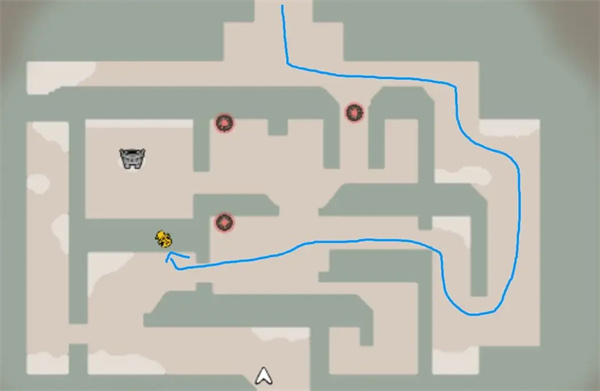 击杀小怪之后我们继续向下,要注意这里的转盘是陷阱,我们不可能避开它,建议按照蓝色箭头所示,先去把机关关闭。