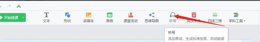 首先,打开希沃白板进入主界面,点击听写图标,如图所示