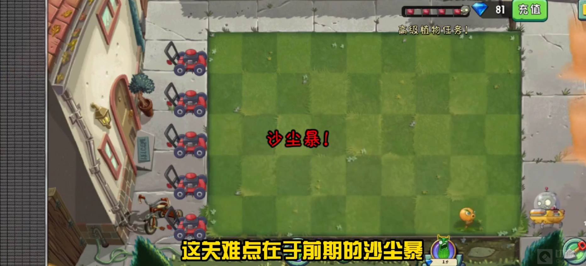 1.这关是传送带随机产生植物,前期的沙尘爆比较难防,所以开局植物也是比较重要的。
