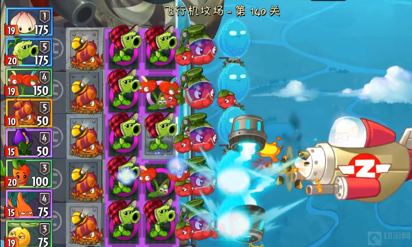 这两个空位置是在清关期间为能量豆保留的。如果前面的蚕豆被秒掉了,不要种蚕豆,需要种上波罗。蚕豆是用来给boss擦点血的。必须抛弃巨人、隐形飞机和大型飞机(那架载着两个小鬼的)。应该注意的是,小鬼非常烦人。它很容易出现在后面。此外,波罗每秒钟就被一颗子弹打死一次。