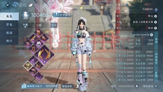 面板:满命中19318,满忽视17668,命中和忽视越高越好,会心站街2.6w以上,入战3w以上,元素攻击2.6w以上