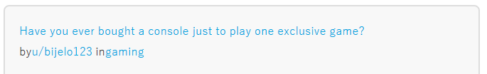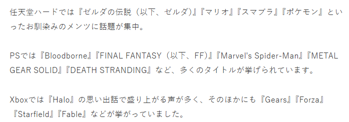 ·话题发起人的发文显然是几乎每一位玩家都亲身经历过的平常事情,贴子迅速引来大批回复,御三家那些耳熟能详的独占名作纷纷冒头,其中最具影响力的分别是: