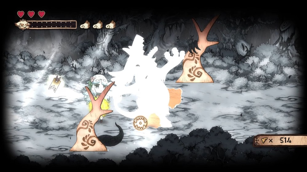 不只挡路的纸怪物,就连行进方向上的碍事岩石、树木与死路,甚至是怪物传来的讯息也能对付!?凡是以黑白描绘的事物,全都能被吞食并破坏!