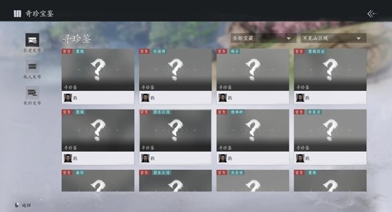 燕云十六声周年活动踏岳寻珍,游侠可以在「奇珍宝鉴」界面追踪鹳长老及其他游侠发布的「寻珍鉴」,获取宝物;也可击败不见山「深泽」、「绥乡」和「天陉」区域内的动物或敌人,将有概率拾取其随身携带的宝物。提交一定套数宝物后,游侠可向鹳长老兑换表情动作[我最棒]、题跋[定珍盘]等奖励。那么这一玩法怎么玩呢?为你准备了一份攻略,一起来看看吧~