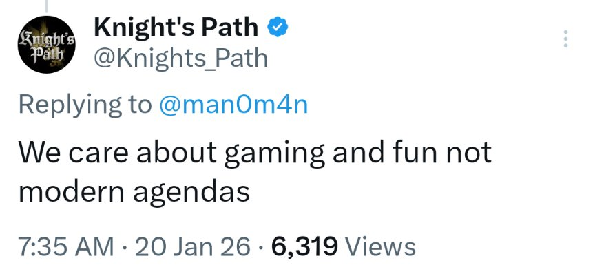 对于某组织要求加入某元素,《骑士之路》官推的回应脑回路就很正常,简直要气死某组织:我们关心的是游戏和好玩,而非现代议程