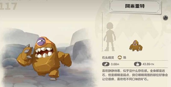 阿米亚特的外观覆盖着厚厚的岩石层,这与其长期生活在沙漠环境中的设定相符。刚捕捉到的阿米亚特等级通常较低,技能也有限,因此初期战斗力可能并不突出。但这只精灵属于成长型,只要投入资源进行培养,提升等级并让其学习关键技能,其战斗能力会有显著的提升。