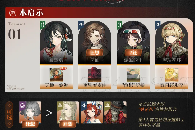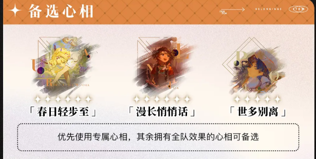 2、配套建议:队友可携带【春日轻步至】/【世别多离】,补充团队增益。