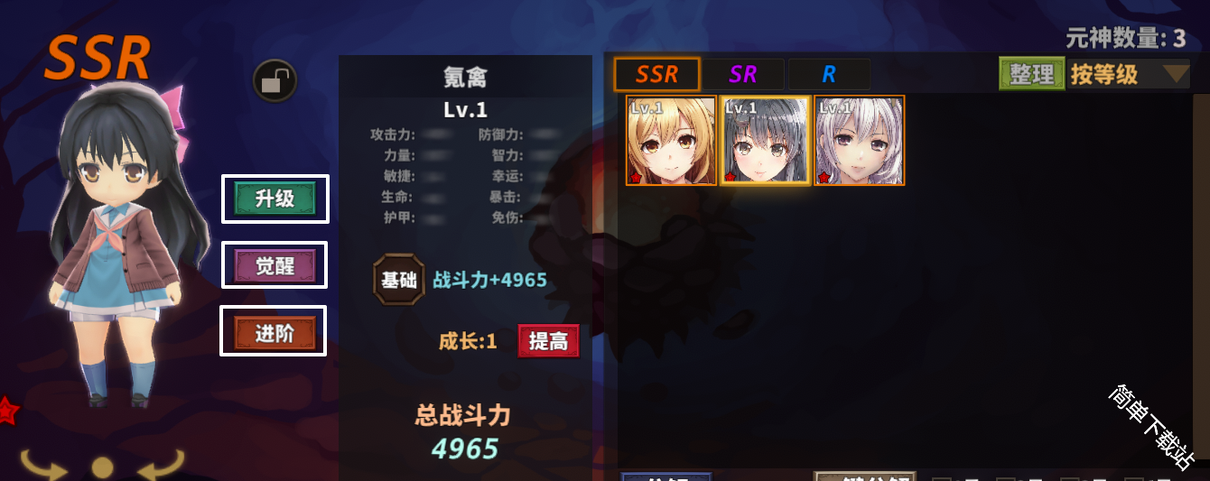 氪禽最先抽,抽7个觉醒,进阶可以用钻,升级用的石头:分解R和SR的元神可得/元神副本能刷出。