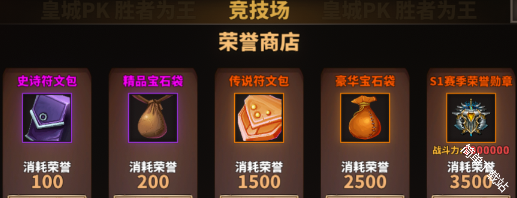 地图:皇城:右上角→竞技场的荣誉商店有荣誉勋章兑换。