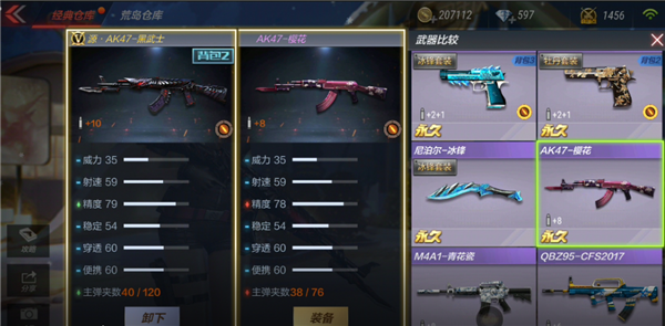 众所周知,英雄级武器的属性其实并没有比其他武器的属性高多少,只不过有额外许多的buff增益效果,因此源计划版的黑武士并没有比其他AK系列武器属性高多少。上图所示的就是源计划版黑武士与AK47-樱花的属性对比情况,小伙伴们可以看到这两把武器的属性基本相同,黑武士仅仅在精准度和子弹数量两大方面比AK47-樱花属性高,不过单靠属性页面的数据并没有太大的用途,还是要看具体的实战表现了。