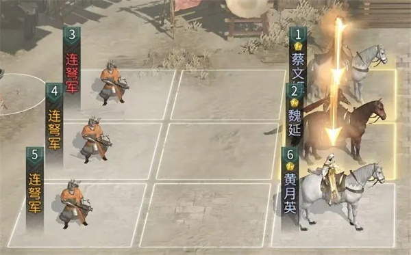 英雄站位:魏延有一个很重要的机制,即造成伤害不受自身兵力影响,意味着他可以站中间来吸收名将的伤害,并且魏延觉醒还能给自己施加护盾,肉盾加主c,存在感拉满了,三位英雄都放置在前排,魏延站黄月英与蔡文姬的追击格,蔡文姬站魏延的追击格。