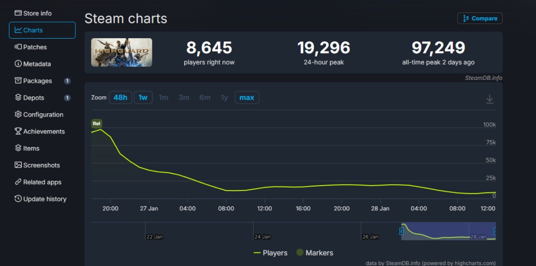 免费FPS《巅峰守卫(Highguard)》Steam首发将近有10万人同时在线,然而仅仅两天时间不到,该作就即将退出历史舞台。