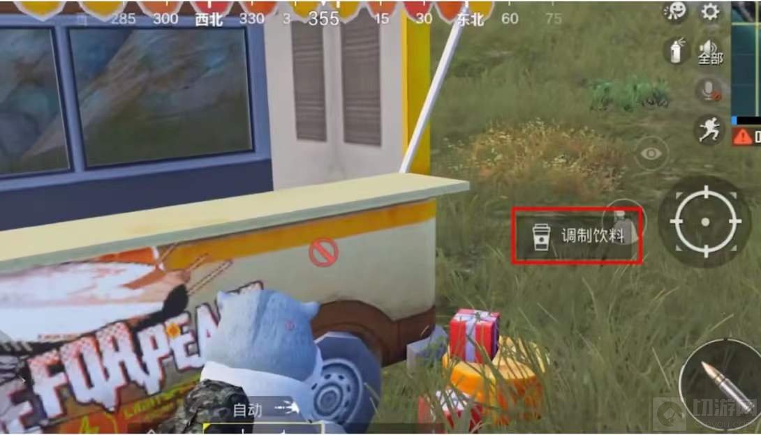 2、到达图标地点后,就可以看到一辆小黄车。玩家靠近小黄车后,就会出现调制饮料的按钮,点击后就可以进入海岛冰茶调制页面。