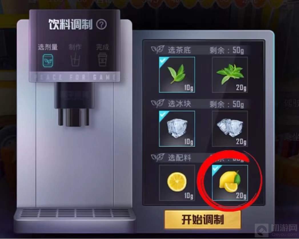 3、在调制页面中选择柠檬作为材料,就可以调制出海岛冰茶。