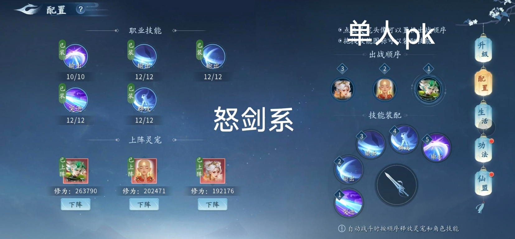 输出-剑阵-输出-群攻-剑阵