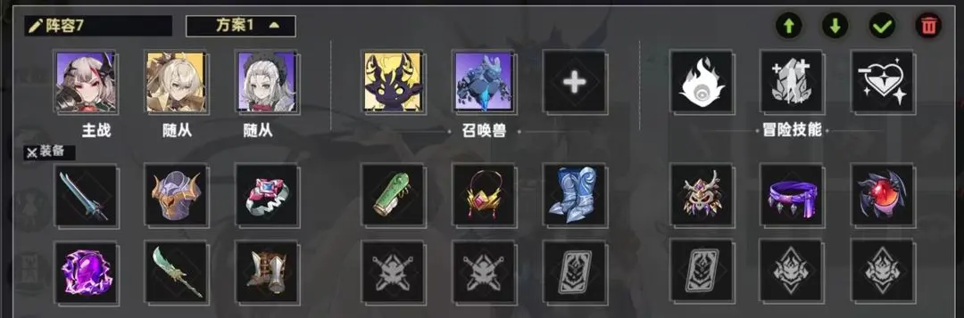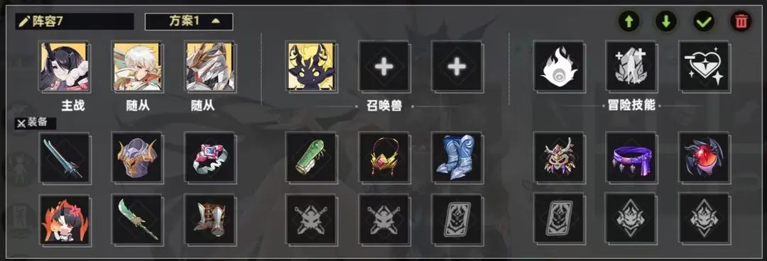 前期不建议强行去通关恶梦,收益低,试错体力消耗大。在角色、宝石、战技(前三基础被动固定数值升满)、装备有一定积累后再去直接通关。以下阵容出现的装备最高是无光深渊490+就能掉落,加入活动获取的装备技能书后难度较简单。空白槽位置可随意放置。