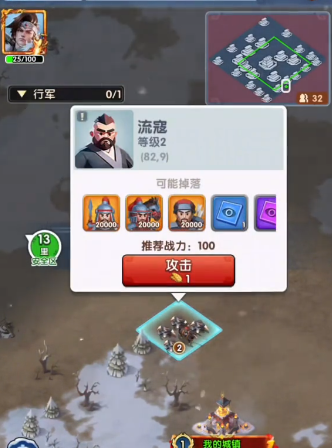 3、左上角可以看到兵力显示,通过打流寇来增加兵力