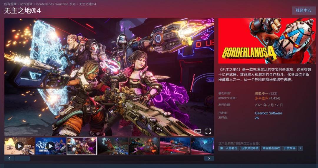 《无主之地4》Steam简体中文评价仍然是多半差评: