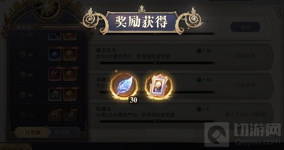 完成游戏的每日任务也可以获得传世玉叶,我们每天的活跃值达到100后,可以领取30个传世玉叶,周奖励活跃度满450,还有100个传世玉叶可以拿。