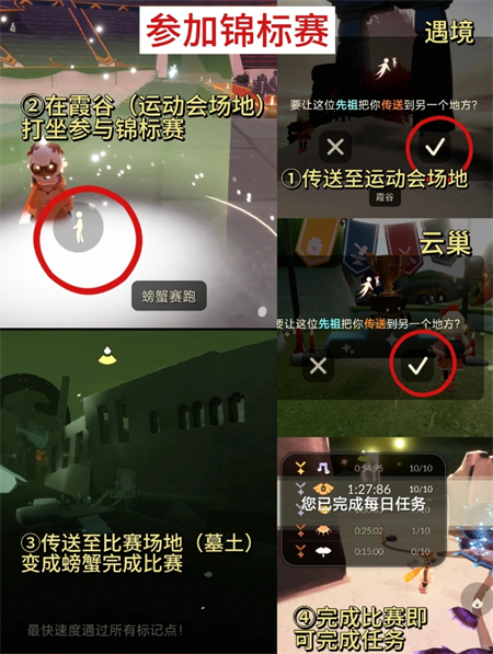 1.参加锦标赛:通过遇境传送到竞技场,过完动画后选择加入任意一个阵营,加入后选择参加任意一个比赛项目,完成后不要忘了回了领活动烛火
