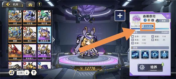 随后我们返回机库找到刚刚领取完钻石的角色,在名字下方有个“等级重置”我们点下去,就能拿回升级所需的材料。