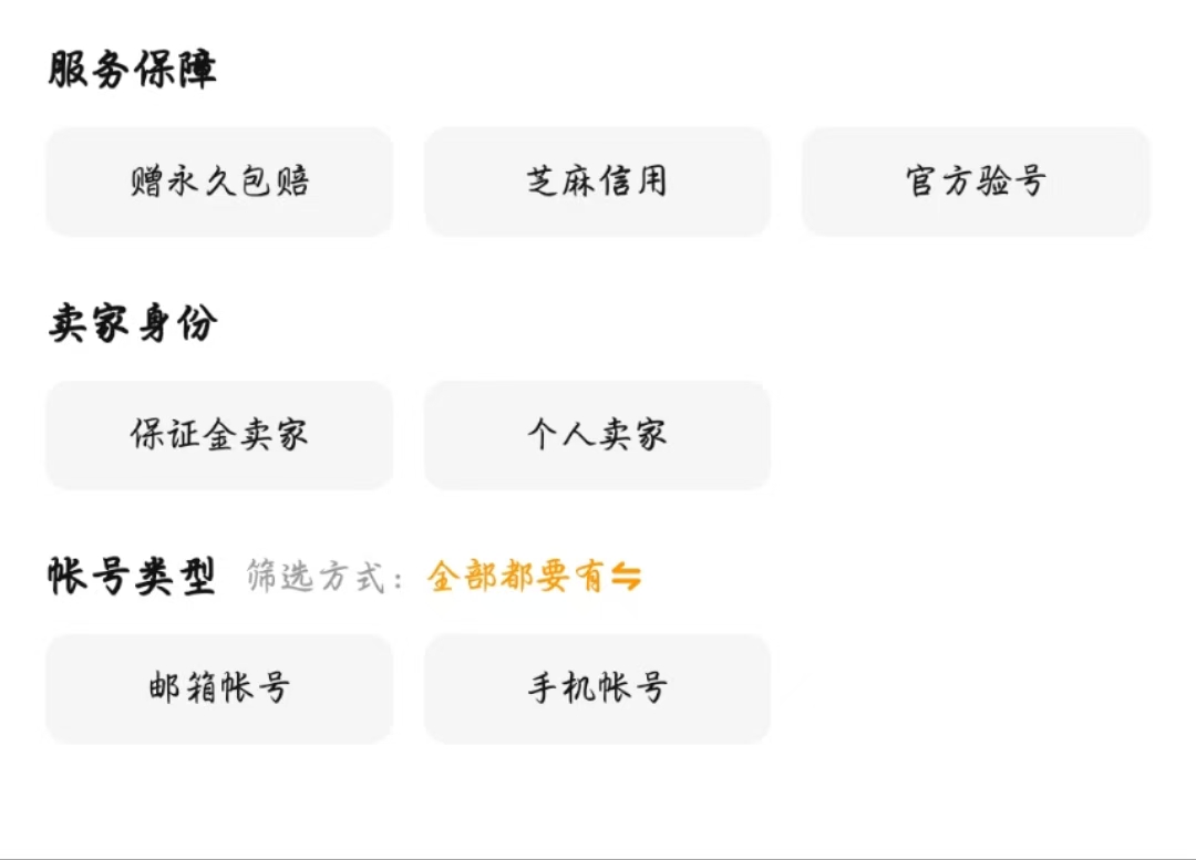 除了提供优质服务之外,对于卖家买家的筛选也是十分严格的,不仅需要双方完成实名认证,而且卖家还需要认证相关身份才可以正式上架账号,而认证时可以选择认证个人卖家和诚信卖家,因此小伙伴们在选择账号时,可以优先选择信用度比较高的卖家,更靠谱。