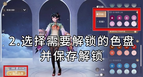 3.选择需要解锁的色盘(一个区域选择一个色盘最方便)