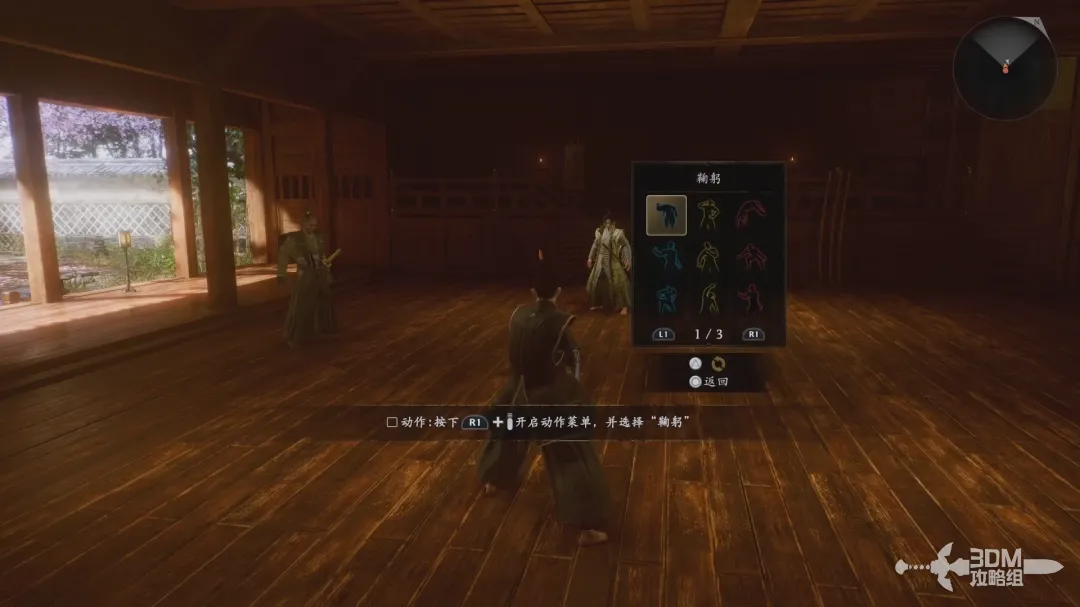 同时按下R1+选项键打开表情菜单,然后选择鞠躬动作,和德川国松练习。