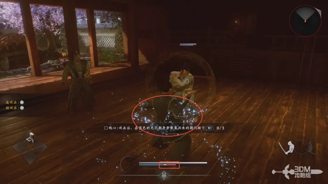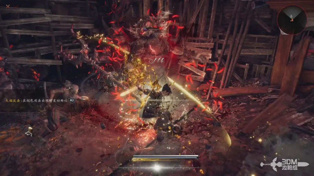 当敌人释放强力攻击时(带有红色的预兆),按下R2(右扳机)释放“转心”可以进行弹反,可造成高额伤害。