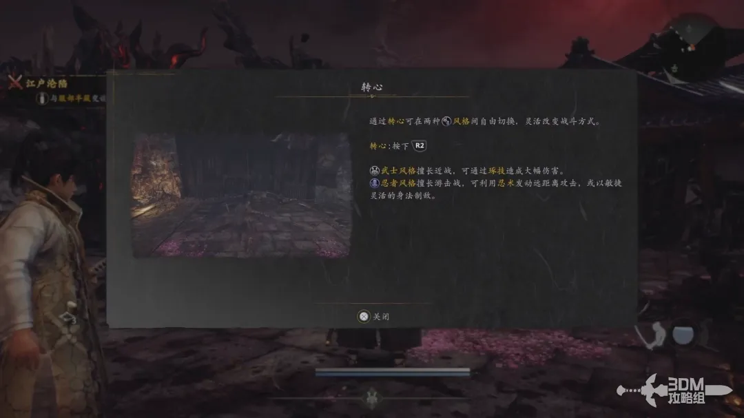 不同风格有不同的战斗方式,按R2(右扳机)“转心”转换两种不同的风格。