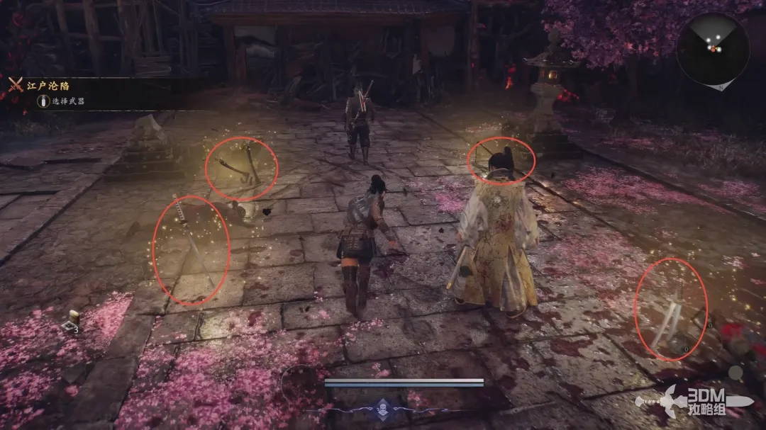 地上有不同的几种武器,刀,双刀等,选择适合自己的,选择完成后和服部半藏对话,确认选择后开启战斗,武器后续仍然可以更改。