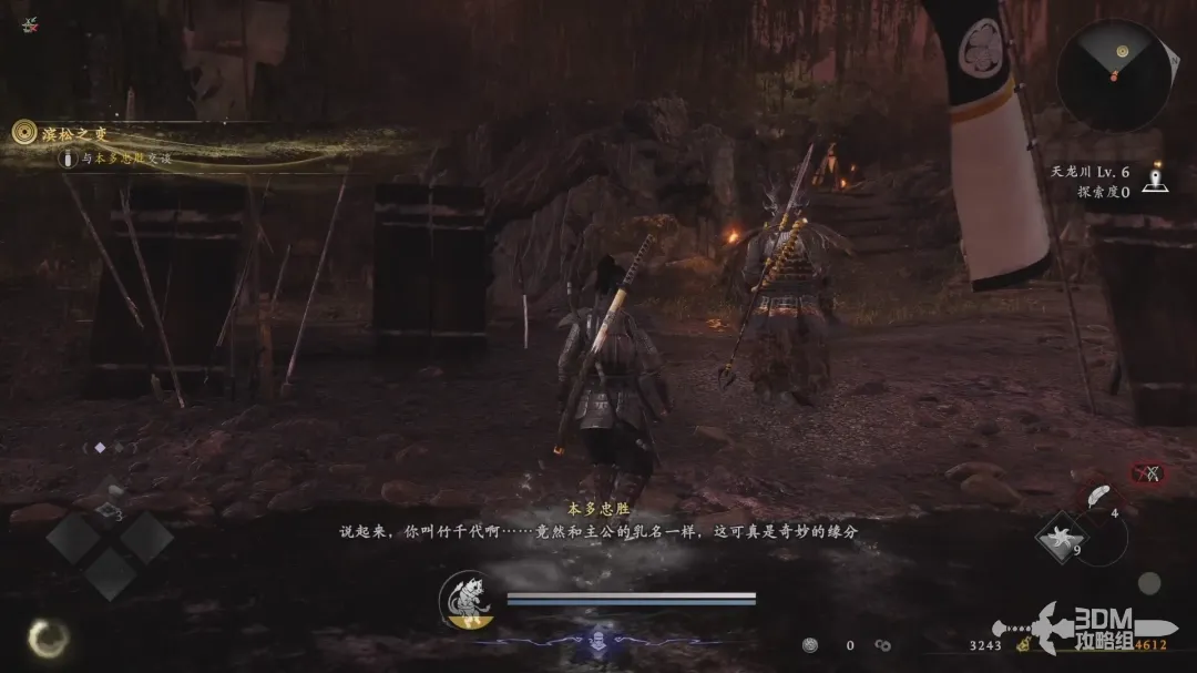 和本多忠胜乘坐小船来到新的地图,然后和他对话推进剧情。