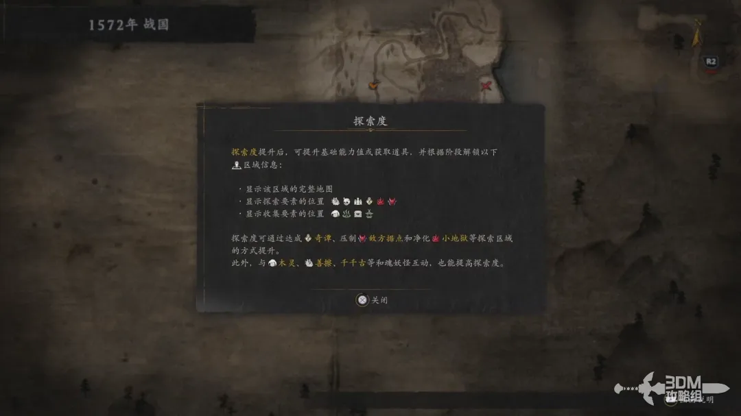 探索地图可以提升角色的基础能力,探索度的提升将会显示更加完整的地图,还有另外的探索要素和收集要素的位置;