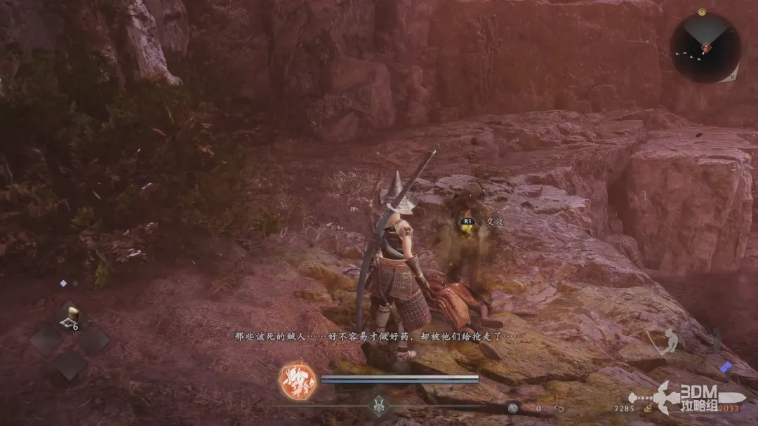 清理掉所有的盗贼后,和地面上的金色灵魂互动,拿到容平丸之后,触发对话。