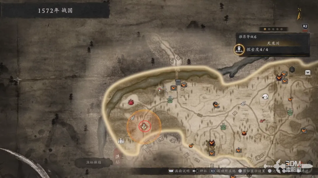 按下触摸板可以打开地图,在地图中可以设置坐标,非特殊情况下可以传送到已解锁的神社,地图上可以显示收集品。