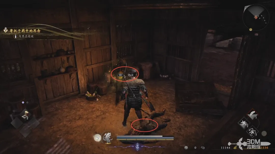 打败敌人进入屋内,先和地上尸体上的金色灵魂互动,然后旁边会出现一个灵魂,和灵魂对话,完成此任务。