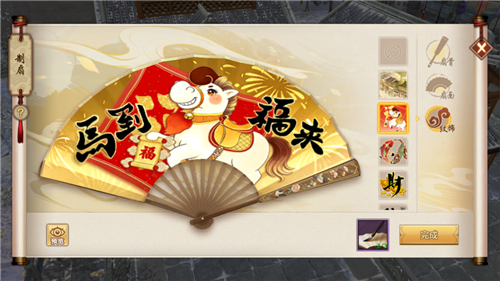制扇时可随时预览效果,调整满意后,消耗3个丹青引即可激活专属百变外观(有效期5天);丹青引参与烟火贺新年、暖谷沐春、绘福迎吉祥三大新春活动就能轻松获取。