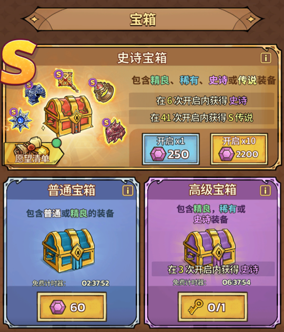宝箱抽取与商店兑换:游戏内钻石商店提供普通、高级、史诗三类宝箱,开启后可获得橙色、红色等高阶装备及完整套装部件,是获取稀有属性装备的核心途径。