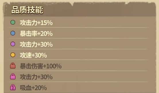 基础属性(主词条):决定装备定位的核心数值,如攻击、生命等。各部位主属性类型固定不可变更——武器与头盔恒定提升攻击力,衣服与饰品恒定提升生命值。