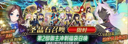 活动期间将集中开放多项强化支援:包括从者技能升级、礼装突破素材限时刷新,以及特定概念礼装强化加成。此外,第二部全英灵福袋同步上架,售价为12枚付费圣晶石+12枚免费圣晶石组合形式,延续经典兑换机制。