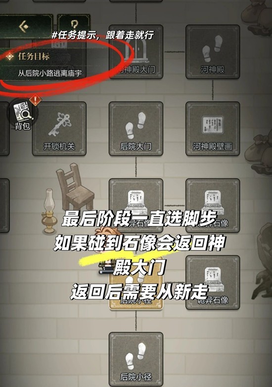 3.最后一个阶段,会有石像和路径,一直点路就行,点石像则会回到神殿门口,还需从来。